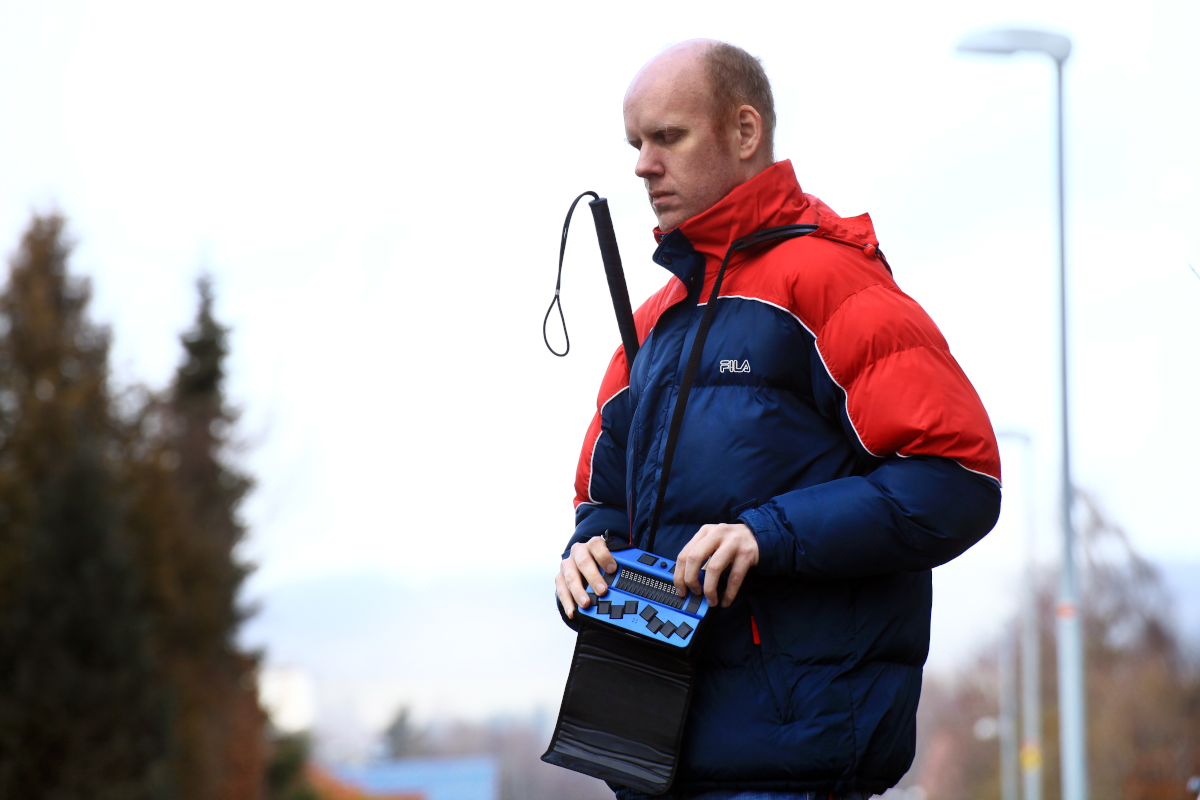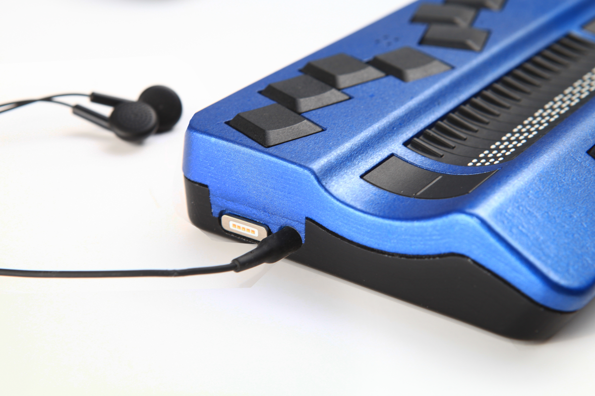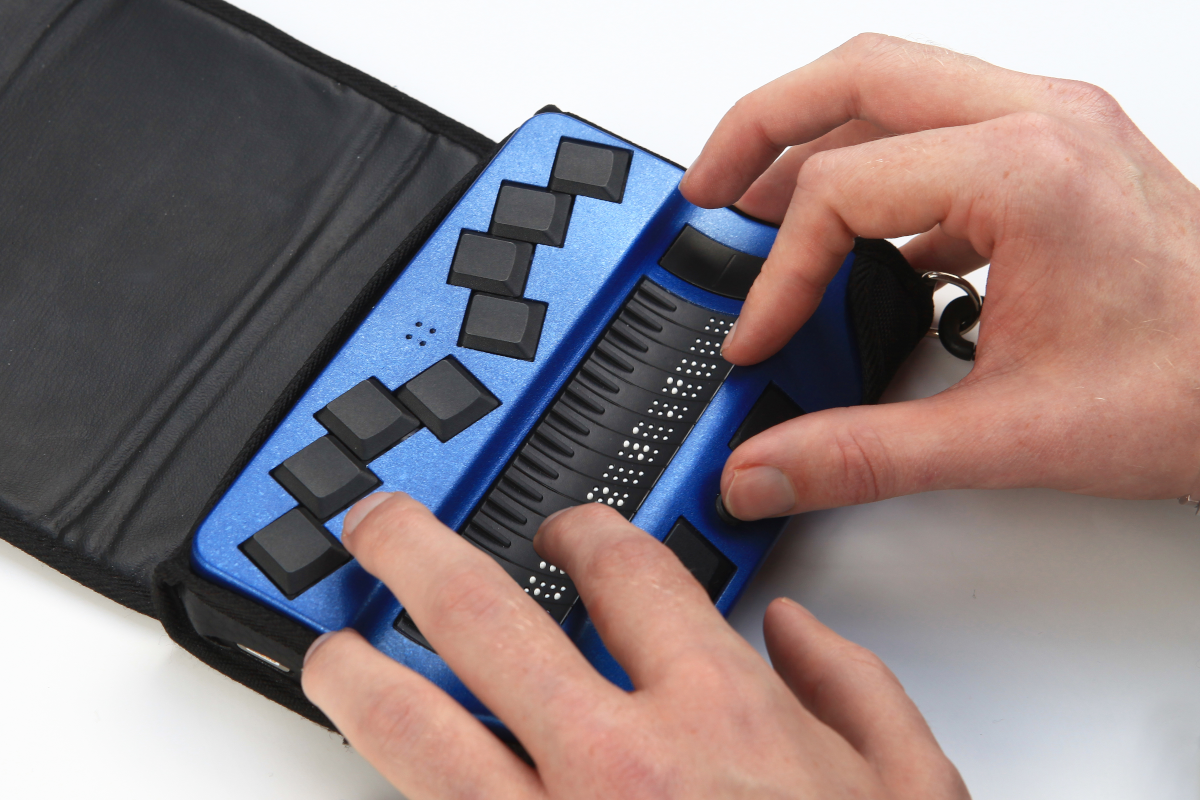 Actilino es el anotador portátil super compacto para usuarios ciegos. Ya sea que viaje en tren o autobús, esté cómodo en el jardín o concentrado en el trabajo. Las 16 celdas Braille piezocerámicas y el teclado Braille silencioso hacen de Actilino su compañero confiable para todos los días. Actilino muestra información en Braille en tiempo real, para una lectura táctil. Simplemente escriba sus notas con Actilino y envíelas a su teléfono inteligente o PC. El micrófono y los altavoces integrados le permiten realizar llamadas con programas como Skype, FaceTime y WhatsApp cuando está conectado a su teléfono inteligente. La tecnología patentada de control táctil activo (ATC) permite usar el dispositivo como la pantalla táctil de una tableta. ATC ofrece lectura continua. Al llegar al final del texto mostrado, se desplaza automáticamente a la siguiente posición de texto.