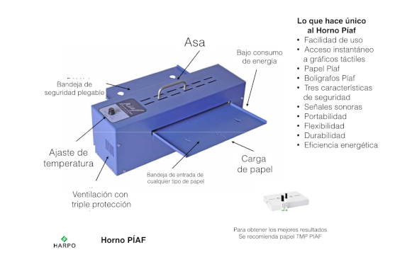 Piaf produce gráficos táctiles de alta calidad utilizando papel cápsula sensible al calor. Es ideal para personas ciegas y baja visión.