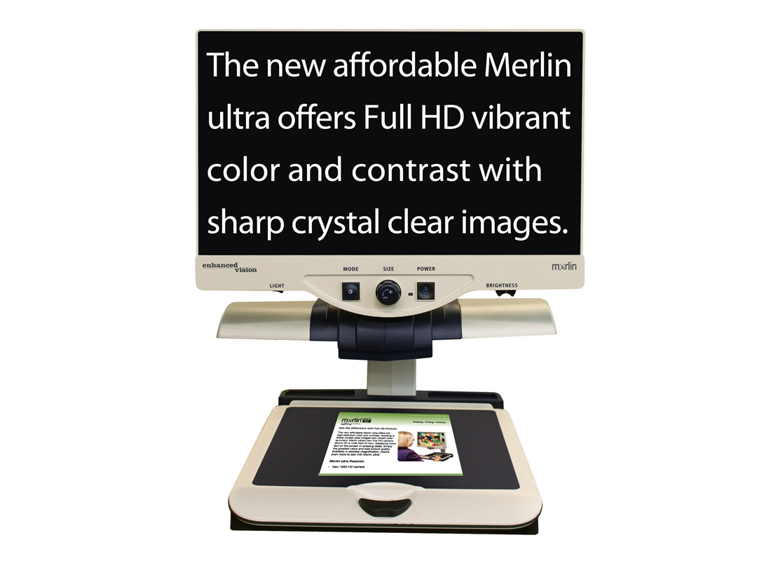 El nuevo y asequible Merlin Ultra ofrece colores y contrastes de alta definición, lo que da como resultado imágenes nítidas y claras y una precisión de color vibrante. La nueva cámara Full HD de Merlin Ultra permite un campo de visión amplio, mostrando más texto en la pantalla con un detalle asombroso. Simplemente el mejor valor y la mejor calidad de imagen disponibles en aumento de escritorio HD, ¡hay aún más para ver con Merlin Ultra!