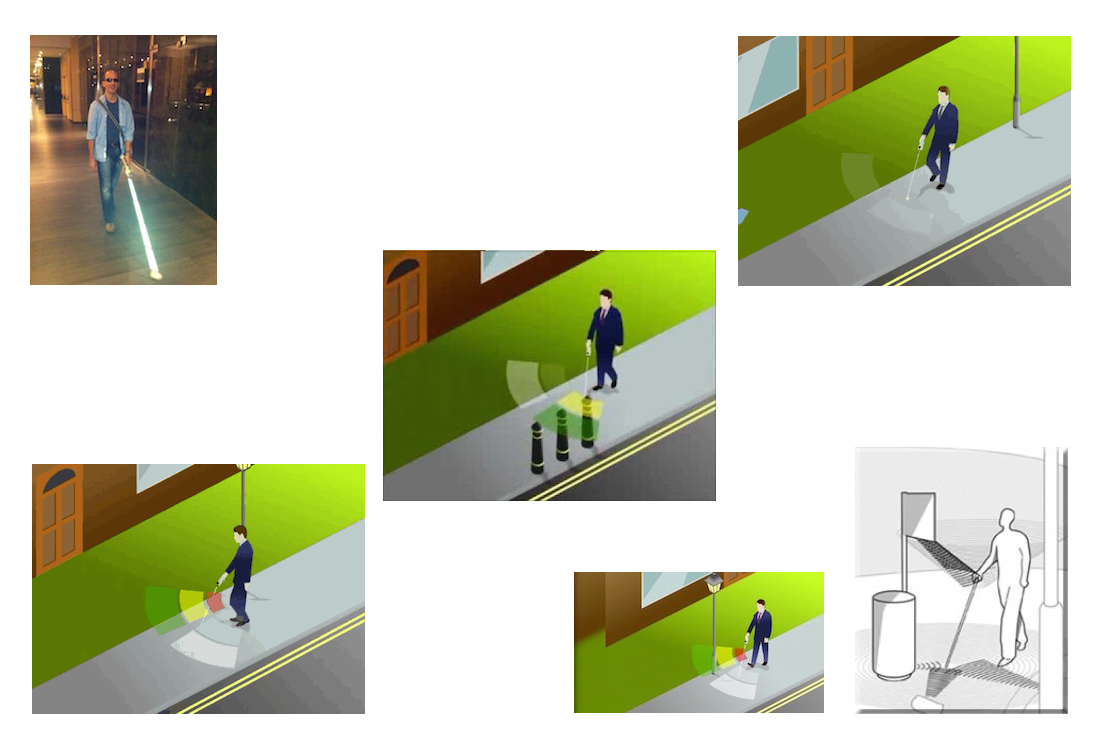 El conocimiento de un usuario tradicional bastón blanco de la trayectoria de su bastón, se limita a la distancia hasta el extremo de éste, alrededor de 1.35 metros.